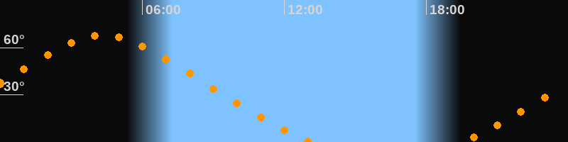 | Untergang | 13:10 Uhr im Nordwesten (αAz = 320,1°) |