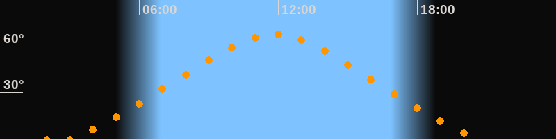 | Höchster Stand (Kulmination) | 11:50 Uhr (h = 67,8°) |