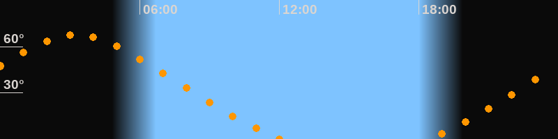 | Untergang | 12:06 Uhr im Nordwesten (αAz = 320,1°) |
