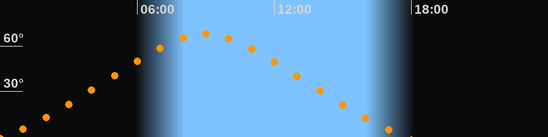 | Höchster Stand (Kulmination) | 08:58 Uhr (h = 67,8°) |