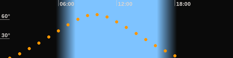 | Höchster Stand (Kulmination) | 09:46 Uhr (h = 67,8°) |