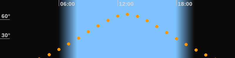 | Höchster Stand (Kulmination) | 12:57 Uhr (h = 67,8°) |