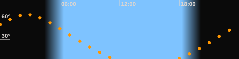 | Untergang | 11:30 Uhr im Nordwesten (αAz = 320,1°) |