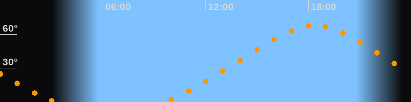 | Höchster Stand (Kulmination) | 18:21 Uhr (h = 67,8°) |