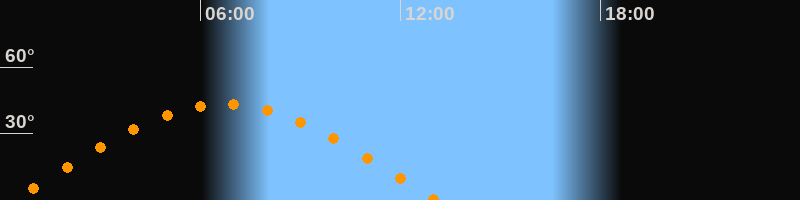 | Höchster Stand (Kulmination) | 06:43 Uhr (h = 43,3°) |
