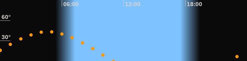 | Höchster Stand (Kulmination) | 04:38 Uhr (h = 43,3°) |