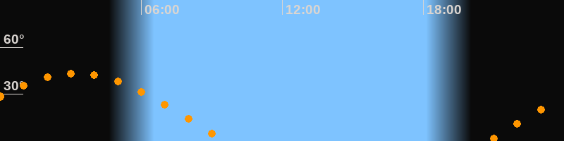 | Höchster Stand (Kulmination) | 03:12 Uhr (h = 43,3°) |