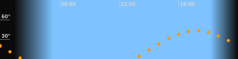 | Höchster Stand (Kulmination) | 19:48 Uhr (h = 43,3°) |