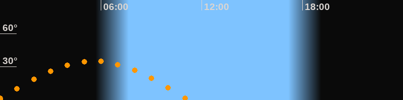 | Untergang | 11:15 Uhr im Westen (αAz = 264,3°) |