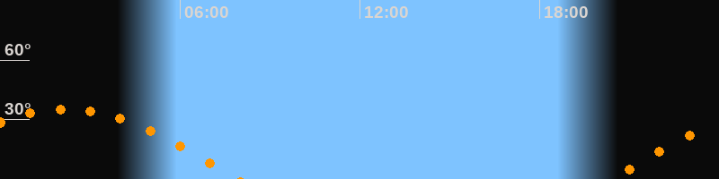 | Untergang | 07:55 Uhr im Westen (αAz = 264,3°) |