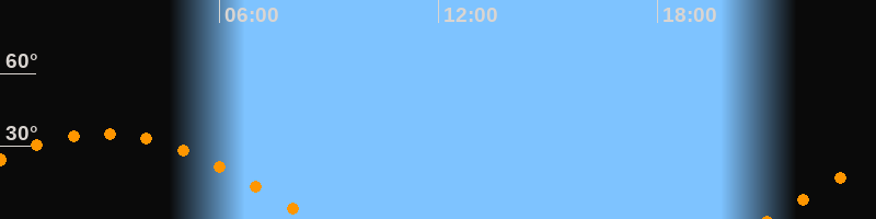 | Aufgang | 21:02 Uhr im Osten (αAz = 95,7°) |