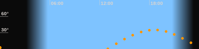 | Aufgang | 12:53 Uhr im Osten (αAz = 95,7°) |