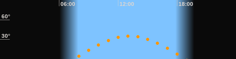 | Höchster Stand (Kulmination) | 13:09 Uhr (h = 35,2°) |