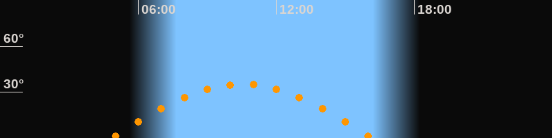 | Höchster Stand (Kulmination) | 10:30 Uhr (h = 35,2°) |