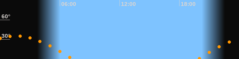 | Untergang | 07:19 Uhr im Westen (αAz = 264,3°) |