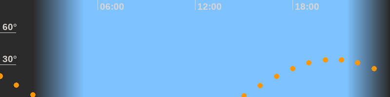 | Untergang | 02:16 Uhr im Westen (αAz = 264,3°) |