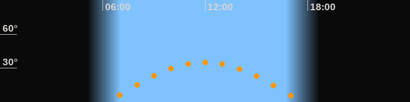 | Höchster Stand (Kulmination) | 11:57 Uhr (h = 35,2°) |