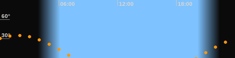 | Untergang | 07:32 Uhr im Westen (αAz = 264,3°) |