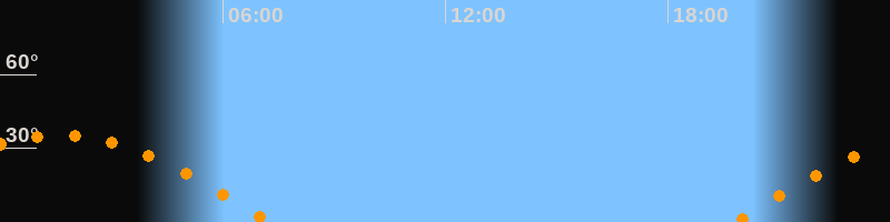 | Untergang | 07:17 Uhr im Westen (αAz = 264,3°) |