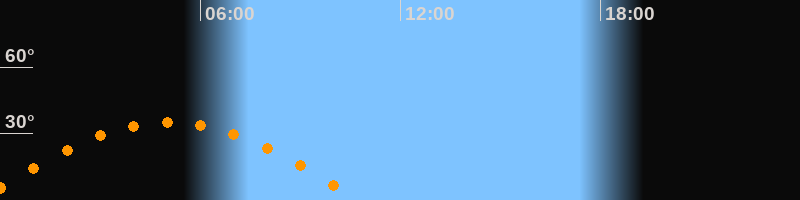 | Aufgang | 23:17 Uhr im Osten (αAz = 95,7°) |