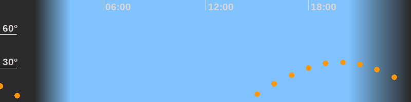 | Untergang | 01:39 Uhr im Westen (αAz = 264,3°) |