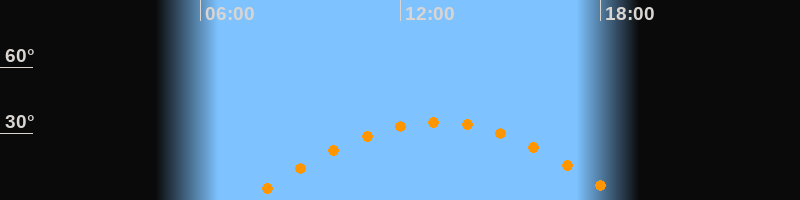 | Höchster Stand (Kulmination) | 13:05 Uhr (h = 35,2°) |