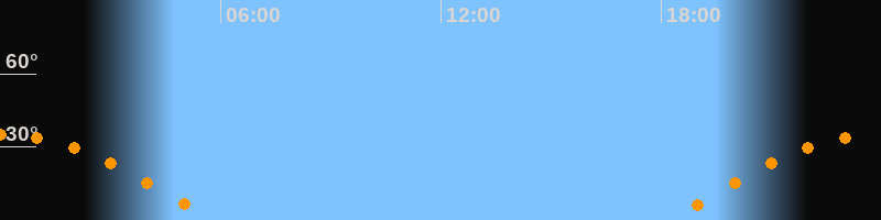 | Aufgang | 18:15 Uhr im Osten (αAz = 95,7°) |
