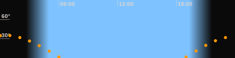 | Untergang | 06:13 Uhr im Westen (αAz = 264,3°) |