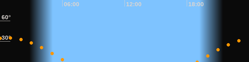 | Untergang | 06:26 Uhr im Westen (αAz = 264,3°) |