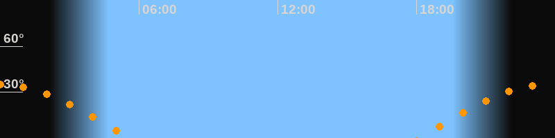 | Aufgang | 18:06 Uhr im Osten (αAz = 95,7°) |