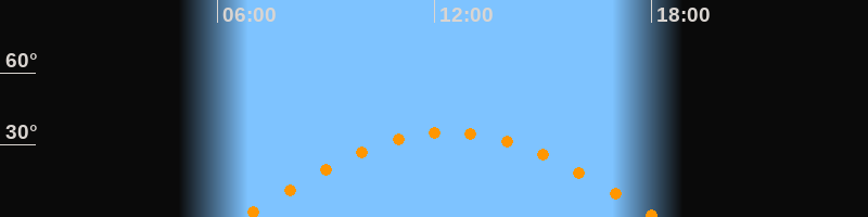 | Höchster Stand (Kulmination) | 12:25 Uhr (h = 35,2°) |