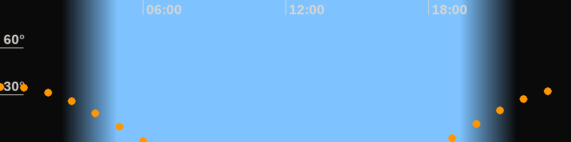 | Aufgang | 18:39 Uhr im Osten (αAz = 95,7°) |