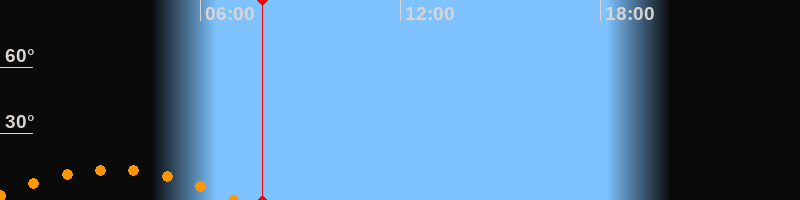 | Untergang | 07:04 Uhr im Südwesten (αAz = 228,2°) |