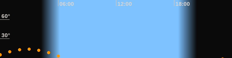 | Untergang | 06:32 Uhr im Südwesten (αAz = 228,2°) |