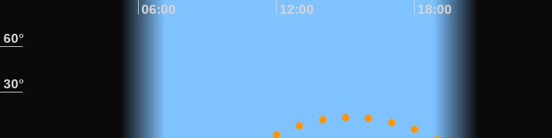 | Aufgang | 11:35 Uhr im Südosten (αAz = 131,8°) |