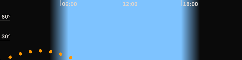 | Untergang | 07:39 Uhr im Südwesten (αAz = 228,2°) |