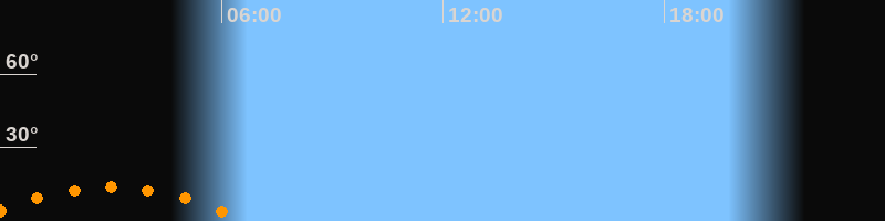 | Untergang | 06:41 Uhr im Südwesten (αAz = 228,2°) |
