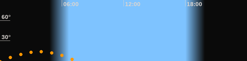 | Untergang | 07:30 Uhr im Südwesten (αAz = 228,2°) |