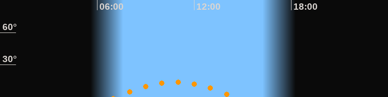 | Untergang | 14:30 Uhr im Südwesten (αAz = 228,2°) |