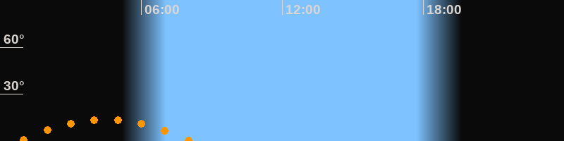 | Untergang | 08:10 Uhr im Südwesten (αAz = 228,2°) |