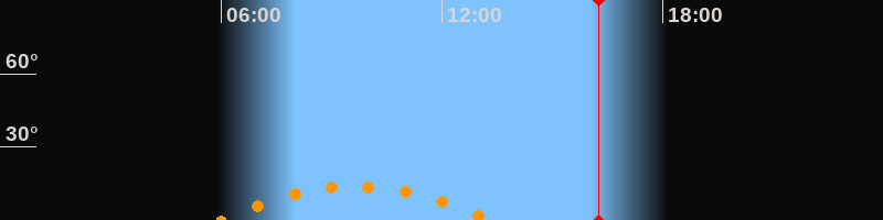 | Untergang | 13:21 Uhr im Südwesten (αAz = 228,2°) |