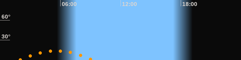| Höchster Stand (Kulmination) | 05:34 Uhr (h = 13,8°) |
