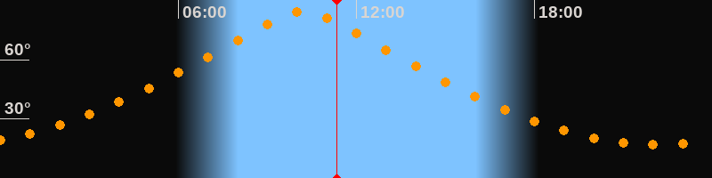 | Höchster Stand (Kulmination) | 10:12 Uhr (h = 84,4°) |