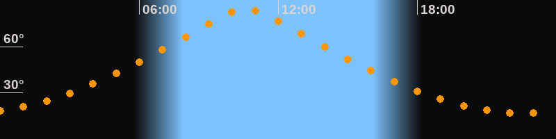 | Höchster Stand (Kulmination) | 10:36 Uhr (h = 84,4°) |