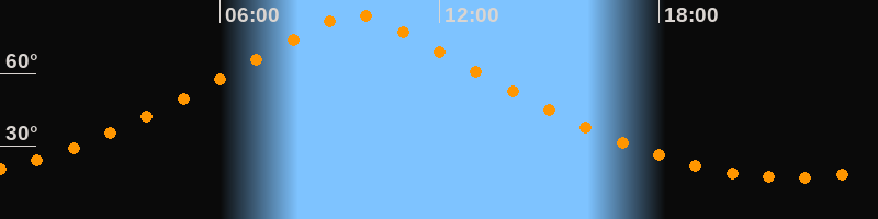 | Höchster Stand (Kulmination) | 09:41 Uhr (h = 84,4°) |