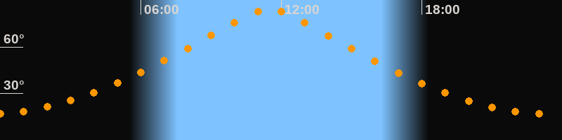 | Höchster Stand (Kulmination) | 11:29 Uhr (h = 84,4°) |