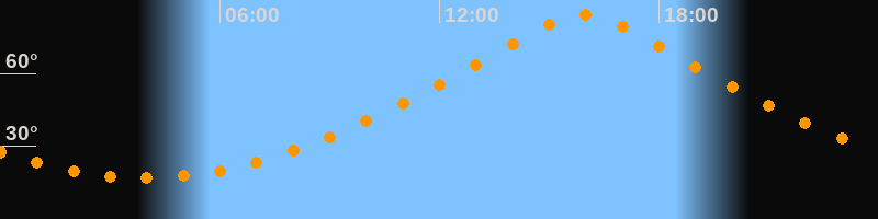 | Höchster Stand (Kulmination) | 15:56 Uhr (h = 84,4°) |