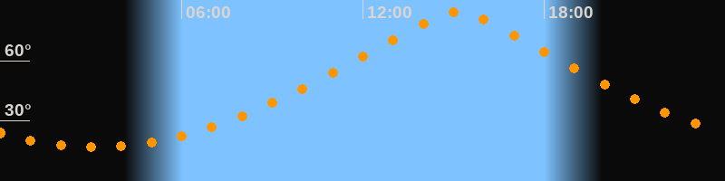 | Höchster Stand (Kulmination) | 15:08 Uhr (h = 84,4°) |