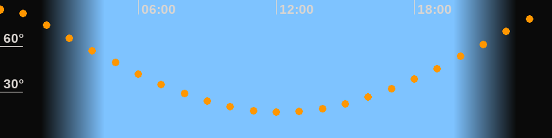 | Höchster Stand (Kulmination) | 00:12 Uhr (h = 84,4°) |