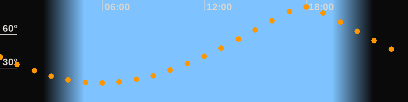 | Höchster Stand (Kulmination) | 17:54 Uhr (h = 84,4°) |